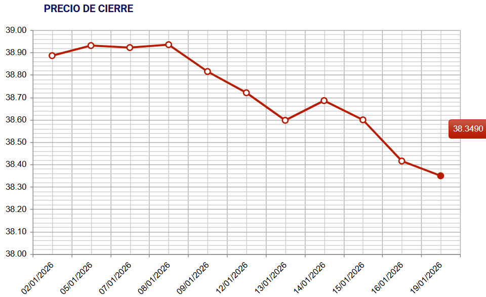 El dólar global bajó 0,2% este lunes en comparación a una canasta de monedas de referencia y en Uruguay cayó por sexta vez en las últimas siete jornadas hasta $ 38,35, nuevo mínimo desde mayo de 2024. En 19 días de enero el dólar acumula una baja de 1,7%.