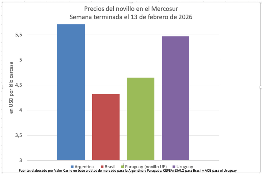 El precio del novillo en Argentina llegó a su máximo histórico la semana pasada, con una referencia de US$ 5,71 señaló Valor Carne.