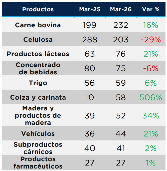 En términos de volumen, se colocaron 29 mil toneladas en el exterior, lo cual implicó una disminución de 4% respecto al año anterior, que fue compensada por un aumento en los precios de 21% respecto a marzo 2025, indica el informe de marzo de la agencia.