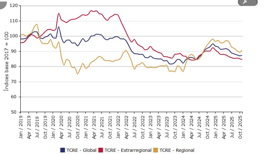 La baja de tasas de interés y de la inflación abren la expectativa de que el fuerte atraso cambiario de 2025 no se repita en 2026. La inflación termiará muy cerca del 4%, en noviembre se ubicó en 4,1% , por debajo de la meta de 4,5%. La inflación subyacente se ubicó en 4,3%.