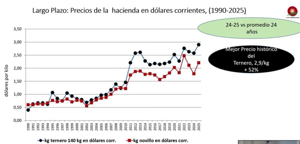 Para el ternero el promedio fue de US$ 2,90 por kilo en el ejercicio, el precio históricamente más alto para la categoría: 12% superior al 23/24 , 11% superior a los últimos cinco ejercicios y 10% superior al mejor año (2022).