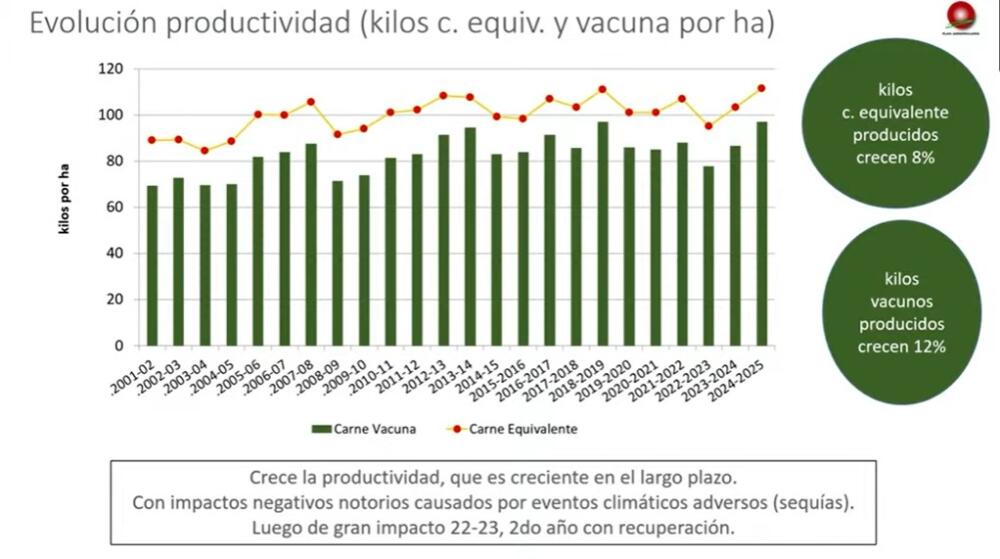 La producción aumentó 12% en kilos de carne vacuna producida, segundo año de recuperación, según los resultados de las Carpetas Verdes.
