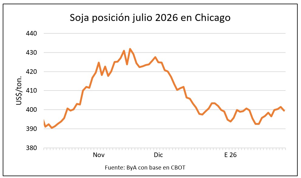 Las referencias locales se sitúan sobre US$ 367 para la soja 2026 aunque la operativa está paralizada en el mercado local, a la espera de mejoras en los precios y señales sobre el rendimiento esperable para una zafra que en productividad estará por debajo de la anterior.