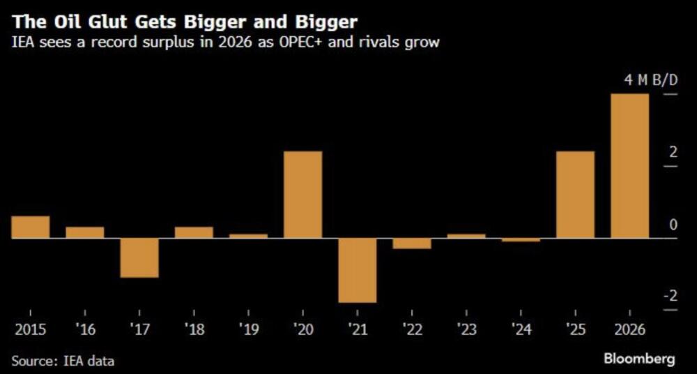 El superávit en el mercado petrolero el próximo año será aún mayor de lo previsto, según el informe de noviembre de la Agencia Internacional de Energía (AIE), que elevó sus estimaciones de crecimiento tanto de la demanda como de la oferta.