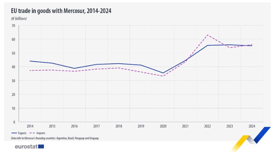 En 2024 la balanza comercial entre ambos bloques mostró un equilibrio sobre los 57 millones de euros en ambas direcciones según los datos oficiales europeos.