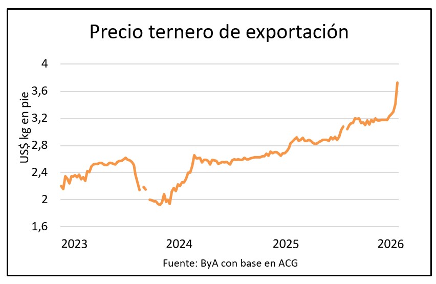 En la última semana el promedio para los terneros de exportación trepó 32 centavos, un 9%, en la planilla de ACG respecto a la semana anterior.