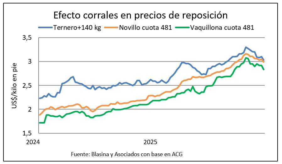 Las vaquillonas cuota, por su parte, treparon 40% desde febrero al pico de octubre y se mantienen 28% por encima según la última grilla de ACG.