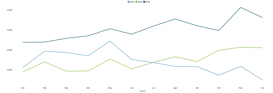 Fue el mejor diciembre registrado, con un promedio de US$ 5.310, y superó con luz los US$ 4.551 alcanzados en mismo mes de 2024.