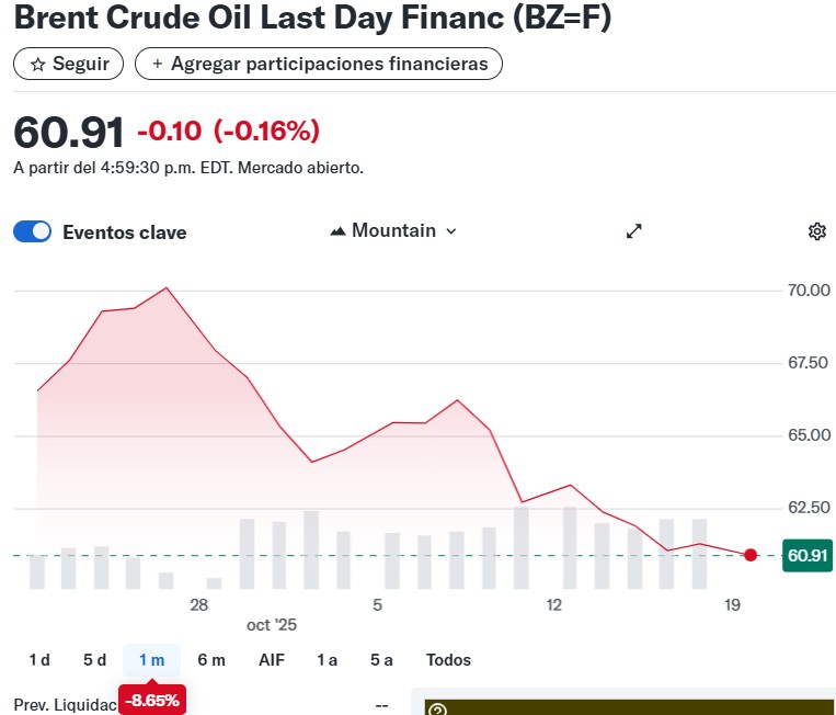 En octubre el Brent bajó 8,6% según la referencia de este lunes.