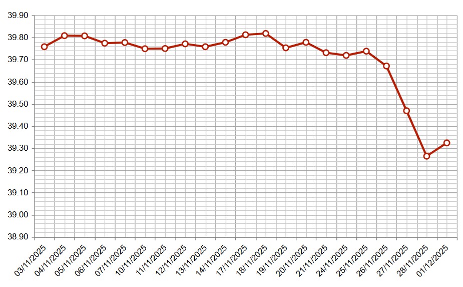 El dólar interbancario cerró a $ 39,32 con una ligera suba de 0,15% respecto al cierre del viernes a $ 39,26, la cotización más baja del año y la menor desde junio de 2024.