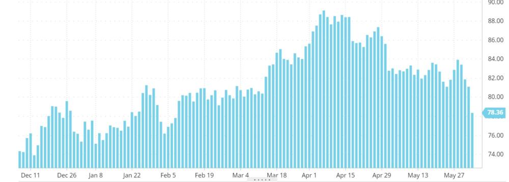 El precio del petróleo bajó 3,4% este lunes y llegó a mínimos desde febrero con un valor de US$ 78,36 por barril de Brent, la referencia para Uruguay. En la última semana la cotización del Brent bajó 6,5%.
