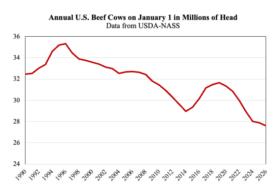 La recuperación en la producción de EEUU demorará en llegar. El stock ganadero de EEUU siguió bajando en 2025 de acuerdo a los datos que contabilizan las existencias al 1 de enero. Y no solo cae el stock total, también lo hace la población de vientres y de terneros. Es … Sigue leyendo El stock ganadero de EEUU siguió bajando en 2025