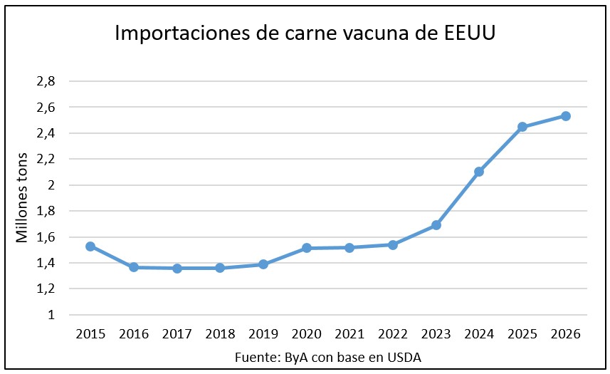 «Las importaciones de carne vacuna se incrementan para 2026 debido a la fuerte y continua demanda de carne vacuna magra procesada y al reciente acuerdo entre Estados Unidos y Argentina que aumenta su cuota de importación de carne vacuna», dijo el USDA.