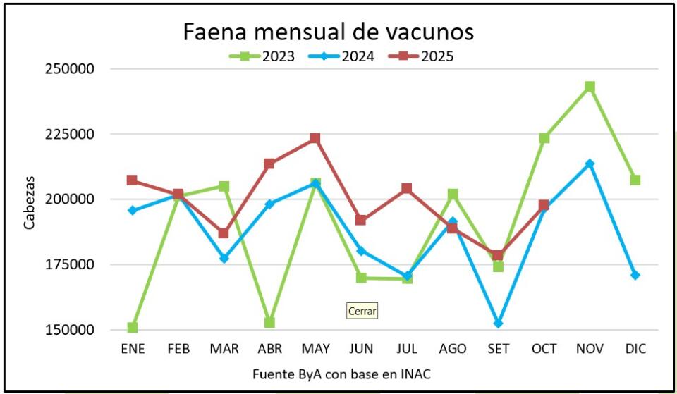 En octubre la faena vacuna superó a 2024 por más faena de hembras y novillos diente de leche