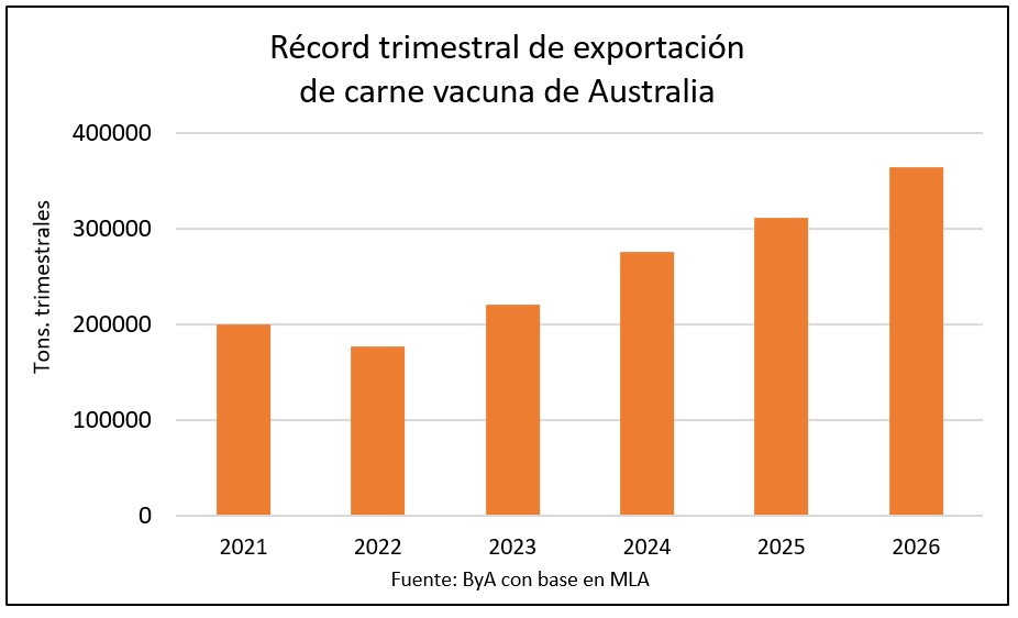 En el primer trimestre del año Australia alcanzó su mayor volumen de exportaciones de carne vacuna desde que hay registros.