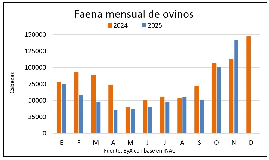 En octubre y noviembre la faena ovina aumentó 20% respecto al año pasado, con 40 mil cabezas más que hace un año.