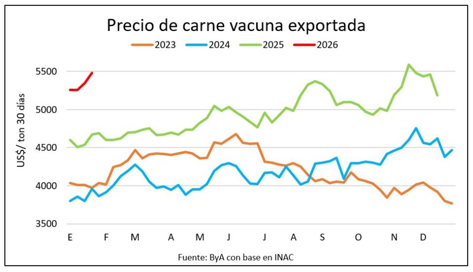 Los últimos datos preliminares de INAC confirman la firmeza de precios para la carne vacuna que en la última semana se situó en US$ 6.311 por tonelada y en los últimos 30 días móviles se consolidó en US$ 5.480.
