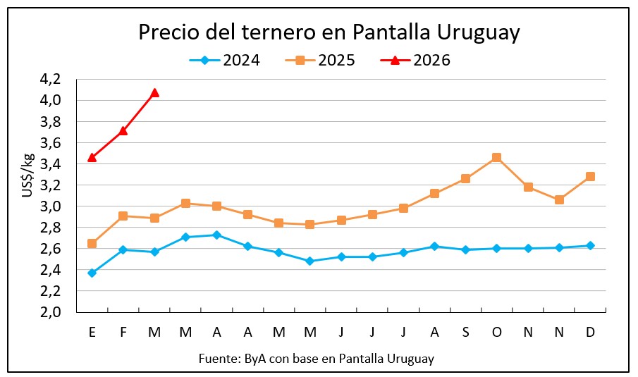 Históricos precios en Pantalla Uruguay: terneros cruzaron los US$ 4 y un lote se vendió a US$ 5,01