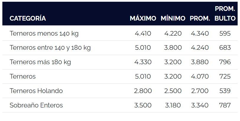 Es un hecho tan histórico como que el promedio de los más casi 2.700 terneros rematados fuera de US$ 4,07 por kilo con 98% de colocación. Nunca se habían superado los US$ 4 de promedio general en un remate. La referencia de valor subió 9,7% respecto al remate anterior en la primera semana de febrero y 41% en comparación a 12 meses atrás.