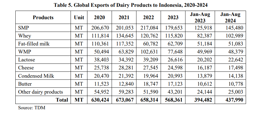Cuadro USDA reporte GAIN Indonesia: Dairy and Products Annual, noviembre 2024
