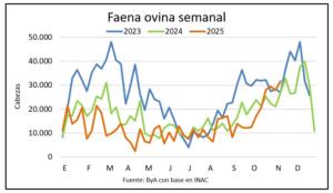 La faena semanal de ovinos superó por primera vez las 30 mil cabezas y estableció un nuevo máximo de 31.710 animales para 2025. La operativa superó a la misma semana de 2024 y de 2023. El INAC registró actividad en 12 plantas, con San Jacinto y Frigocerro concentrando el 52% … Sigue leyendo La faena de lanares pisa el acelerador y cruza las 30 mil cabezas