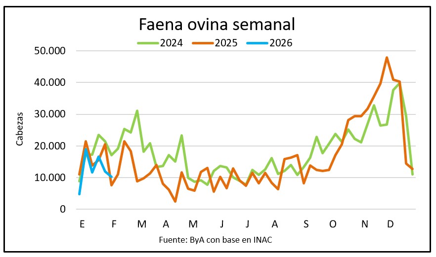 La participación de corderos en el total de faena cayó desde 56% en la última semana de enero a solo 35% en primera de febrero de acuerdo a los datos de INAC de este lunes 9.