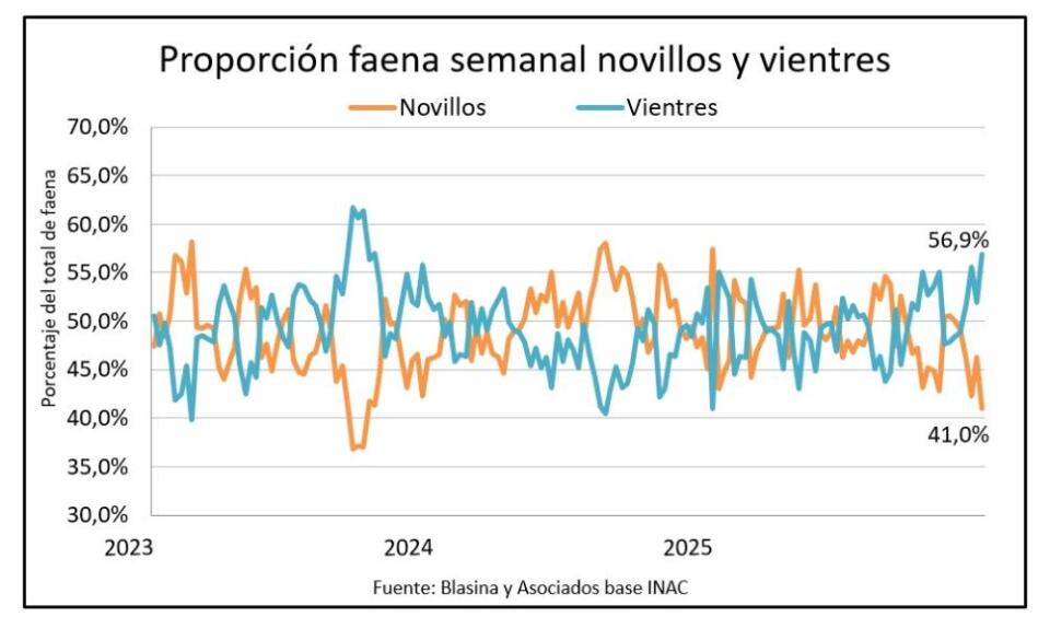 Las vacas faenadas fueron 18.627 y excedieron en volumen a los novillos por primera vez desde las mismas fechas: en setiembre y octubre de 2023 las vacas habían superado en número a los novillos durante seis semanas seguidas.