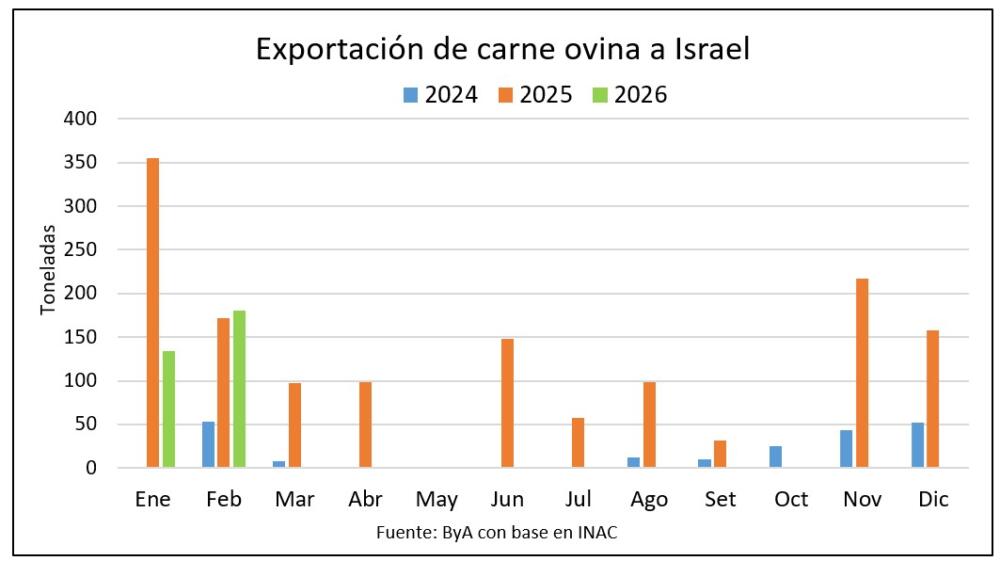 Israel representó el 15% del total exportado en el primer bimestre, con 313 toneladas y viene siendo el segundo principal destino detrás de Brasil, de acuerdo a los datos de INAC.