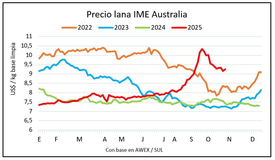 Las ventas a futuro en el mercado de Australia mostraron una estabilización en la última semana que “sugiere un período de consolidación tras el fuerte repunte de octubre” con un ligero fortalecimiento de las ofertas en las categorías de lana Merino fina y media, según Southern Aurora Markets.