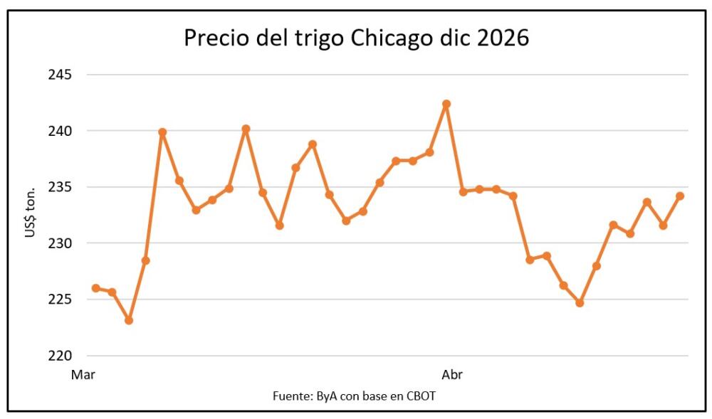 En virtud del clima desfavorable en EEUU, el trigo aceleró y volvió a subir luego de trepar 3% la semana pasada. Este lunes subió de US$ 231 a US$ 234 en la posición diciembre 2026 de referencia para la cebada en Uruguay, con referencias en el mercado local de US$ 200 por tonelada para el trigo y US$ 233 para la cebada cervecera.