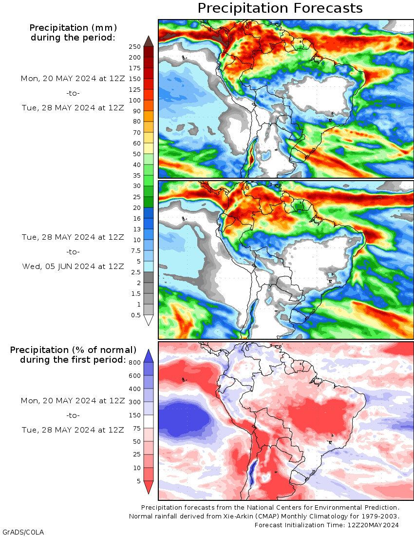 Las lluvias tienen por epicentro Brasil y con esa lógica será la distribución de lluvias en Uruguay ya que en el noreste empieza mañana un episodio importante de lluvias que va a tener sus máximos al norte de la Laguna Merín y en el norte de Rocha, en tanto mantendrá registros de más de 50 mm en Artigas y Rivera.