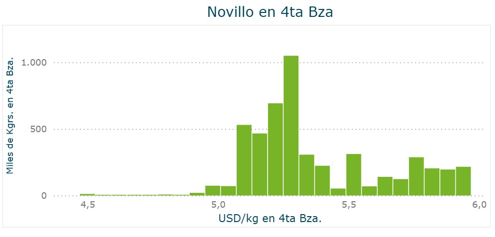 Los valores para el novillo van de US$ 5,20 a US$ 5,30 por los ganados pesados especiales.