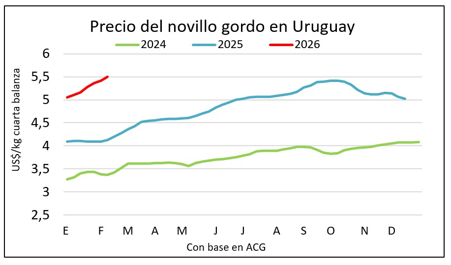 En vacas va de U$S 5,20 a US$ 5,30 y en vaquillonas de U$S 5,35 hasta US$ 5,45.