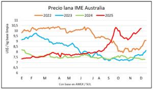 El mercado lanero de Australia podría irse al receso de verano con el indicador por encima de US$ 10 por kilo base limpia, el mayor valor en seis años. Este martes y miércoles se realizarán los últimos remates de la primera mitad de la zafra 2025/26. La semana pasada el … Sigue leyendo Mercado lanero cierra el 2025 con los valores más altos en seis años