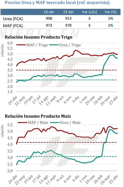 Para barcos nuevos los precios arrancan en US$ 900 por tonelada. El productor que compra hoy a granel en puerto argentino paga US$ 900, mientras los inventarios anteriores se liquidan a US$ 800 con buenos márgenes para el vendedor. En mostrador, la urea supera US$ 1.050. El distribuidor argentino no paga más de US$ 900, y ahí empieza la destrucción de la demanda, señaló.