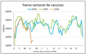 La faena semanal fue de 26.327 cabezas entre el 5 y el 11 de abril, una recuperación de 16% respecto a la bajísima actividad en la semana de Pascuas que le precedió, pero todavía con un nivel de actividad muy reducido si bien volvieron a operar plantas importantes como Inaler … Sigue leyendo Mucha vaquillona en la faena que volvió a ser muy reducida