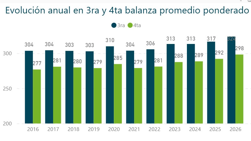 El promedio subió seis kilos respecto al año pasado hasta alcanzar los 298 kg, un peso 19 kilos superior al de cinco años atrás.