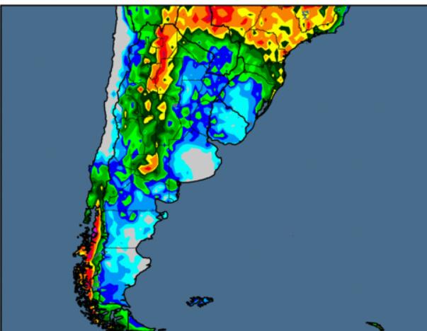 Se consolida una perspectiva de menor rendimiento que el año pasado para cultivos de verano. Este, de varios mapas que seguimos es el más optimista.