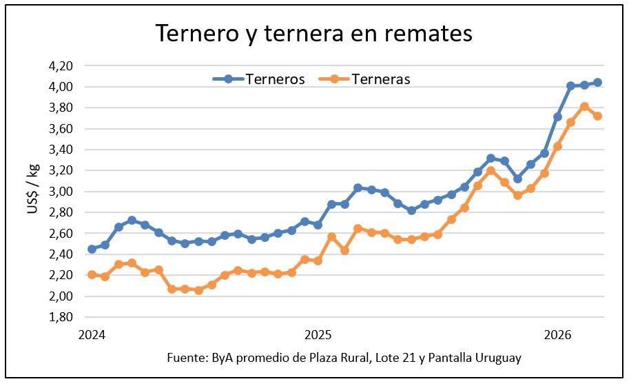 Los terneros están estabilizados en valores al bulto de entre US$ 710 y US$ 720 afirmó, y las terneras entre US$ 620 y US$ 660 por cabeza.