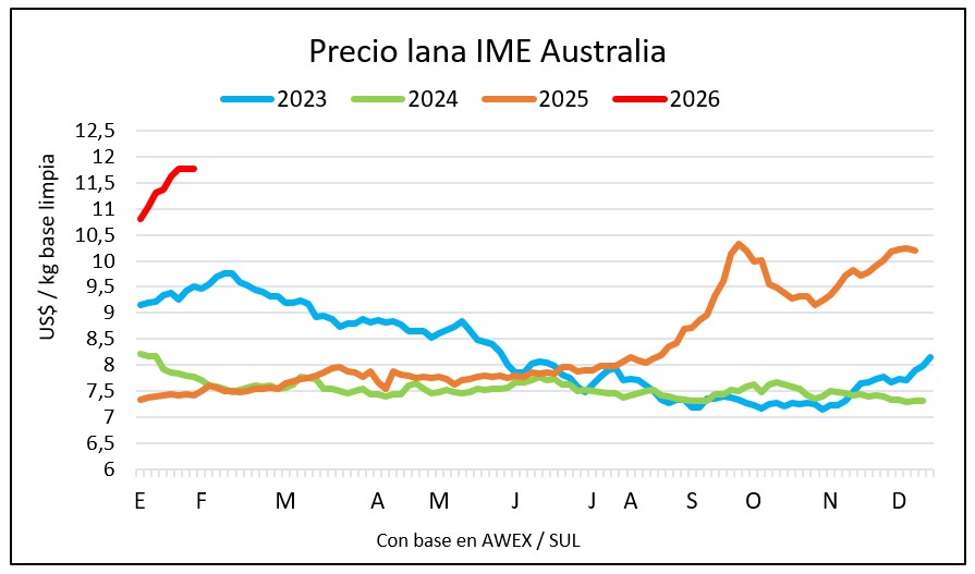 En Australia el indicador IME medido en dólares mostró un comportamiento inusual y cerró en US$ 11,77 por kilo base limpia, sin cambios en ninguna de las dos jornadas de remates.