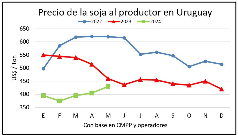 La soja en Uruguay se movió hacia arriba en una jornada de lunes muy activa que comenzó con valores de US$ 422 a US$ 425 la tonelada y continuaron subiendo hasta los US$ 430, el precio más alto desde noviembre del año pasado.