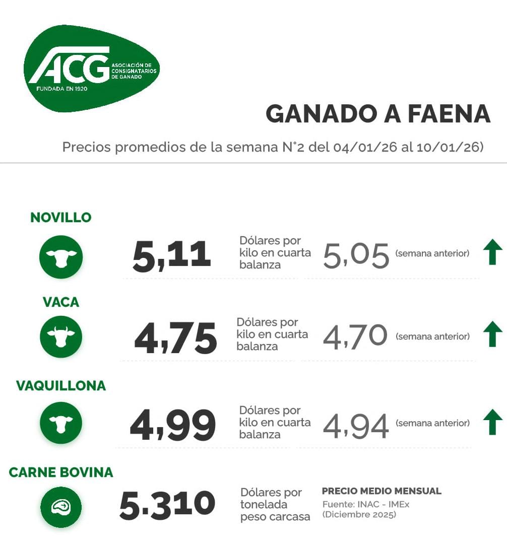 “Mercado estable y demandado”, fue el comentario de ACG para ovinos, que mantuvo el promedio de las cotizaciones en US$ 5,58 para el cordero, US$ 4,65 para los capones y US$ 4,59 para la oveja.
