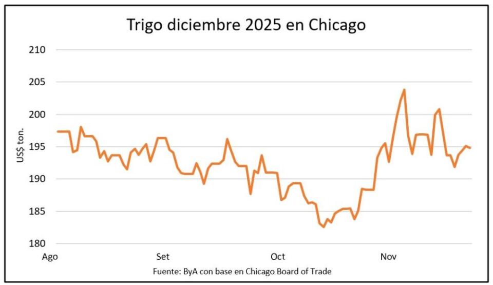 El trigo “estaba en US$ 185 en Argentina hace dos semanas, empezó a bajar y ahora está en US$ 162”, apuntó Davy Dufour, de Dufour Commodities. En Uruguay se activaron las colocaciones cuando llegó a US$ 188 o US$ 190 hace algunas semanas y “capaz que acá no baja tanto pero seguramente menos de los US$ 185 actuales”.