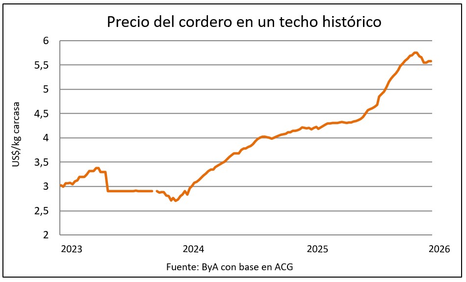 El precio de exportación de la carne ovina arrancó el año en máximos registrados para esta época del año y mantiene la inercia del 2025.