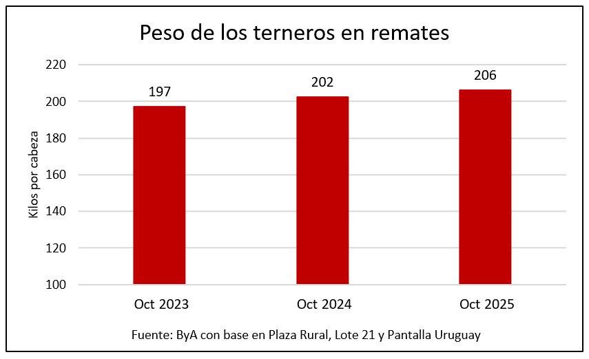 Este año, los criadores están vendiendo terneros de 206 kilos en promedio a US$ 665 por cabeza (promedio de octubre en las pantallas), cambiando 6,2 terneros por un toro a un valor promedio de US$ 4.176.