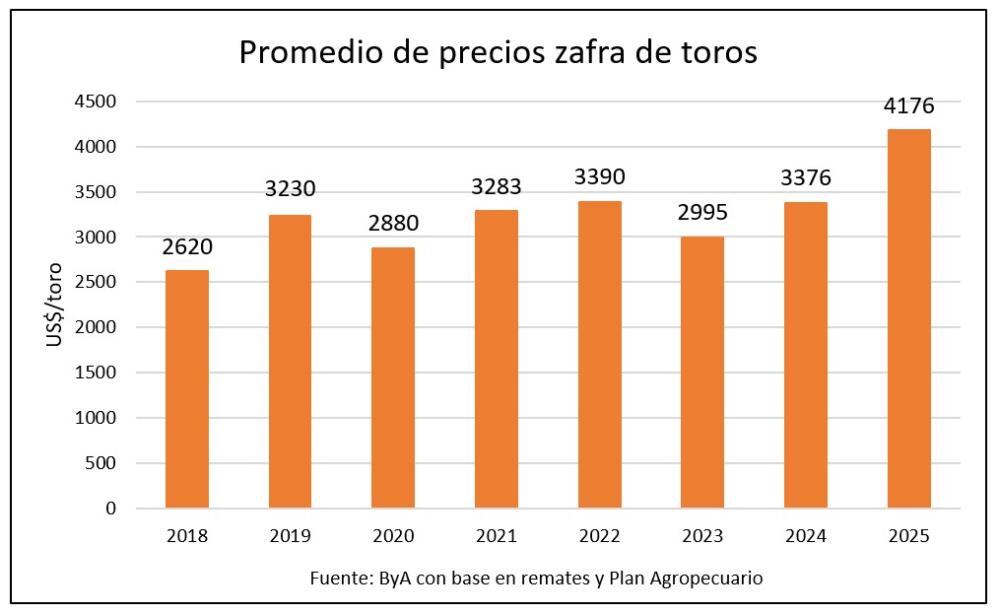 La zafra de toros 2025 está llegando a su fin como la mejor de la historia, dejando más que conformes tanto a los vendedores como a los compradores. Fue la zafra de precios más altos, con un promedio de US$ 4.200 por toro, y las ventas prácticamente totales con más de 7.500 toros comercializados.
